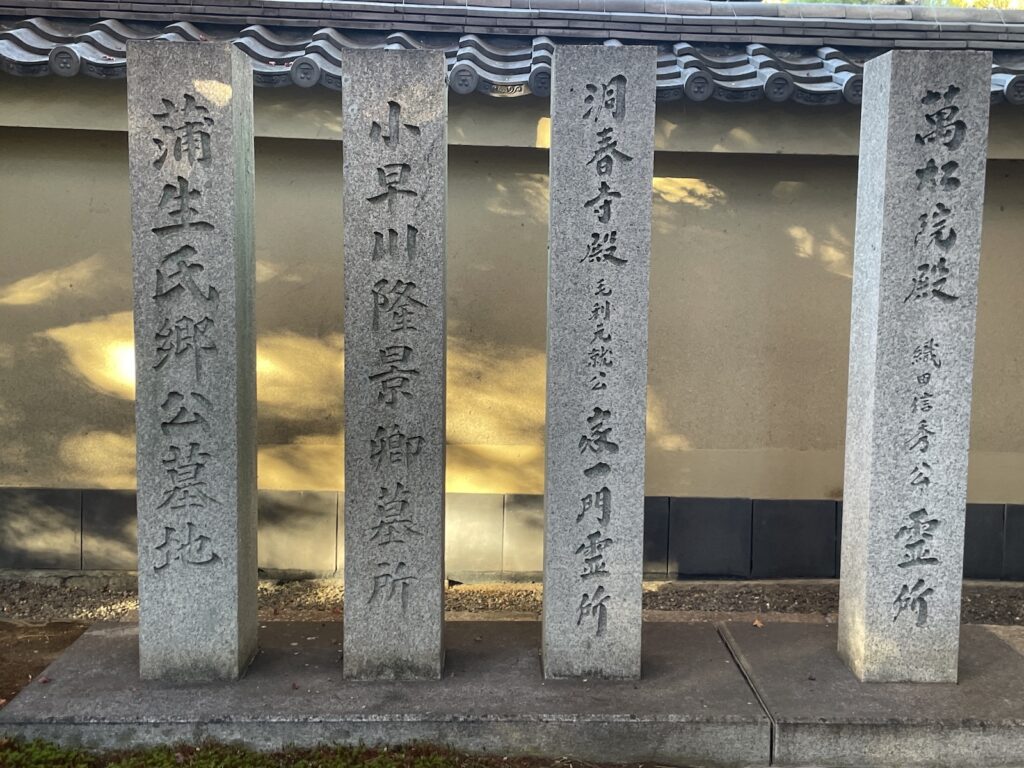 織田家の墓所として有名ですが、戦国武将の蒲生氏郷が埋葬されている寺院でもあります。